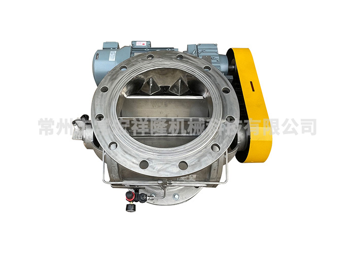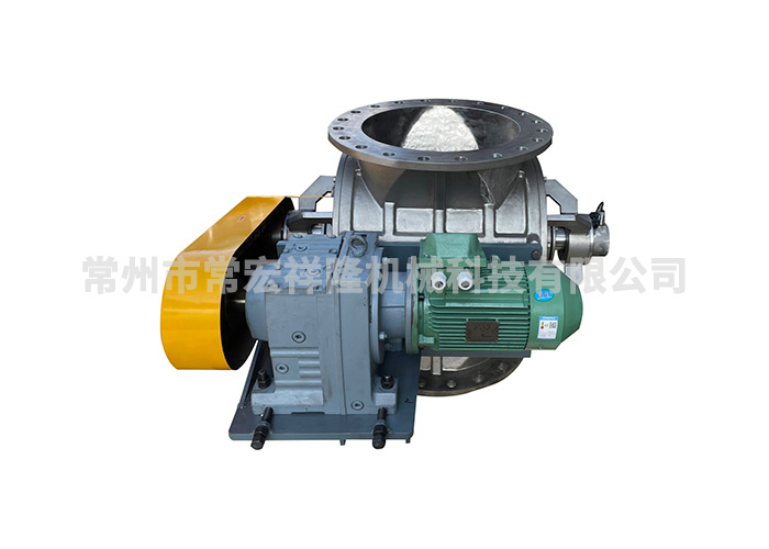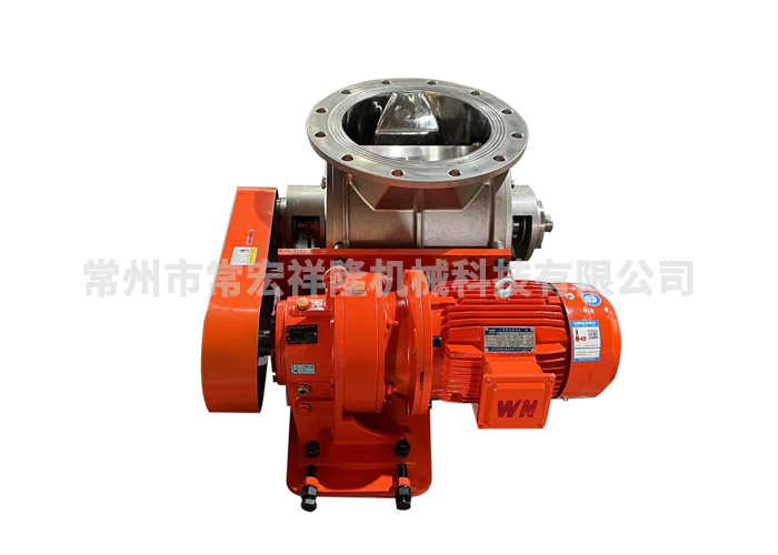 该型机组进出口安装尺寸一致,有圆形或者方形进出口,上部进料,下部出料,减速电动机为侧置型,通过连接板与主机直接相连,链轮传动。适用于高温及其它一般工况。